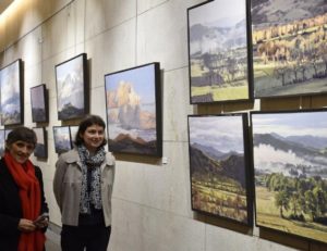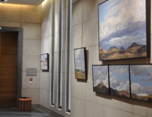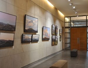Cette exposition présente exclusivement des œuvres vues depuis l’atelier de l’artiste. Dominant la plaine de l’Emblavez, ce dernier offre à Anne Baudequin une vue grandiose sur le paysage façonné par les volcans. Ses pinceaux l’explorent inlassablement, comme une promenade, renouvelée chaque jour par la lumière, les variations atmosphériques et les saisons. Certaines toiles embrassent l’immensité du panorama, où le ciel souverain envahit la composition, limpide à l’aube ou chargé de nuages. D’autres n’en révèlent qu’un fragment, tel un échantillon de lumière. Tantôt le regard s’élance vers l’horizon, où monts et ciel se fondent, tantôt il plonge dans la plaine de la Loire, attiré par les brumes qui voilent et dévoilent le paysage, le réinventant sans cesse. Cette relation intime avec le motif lui permet d’en saisir les subtiles et infinies variations. Chacun de ses tableaux témoigne de l’instant où la beauté inattendue d’une lumière transfigure ce paysage familier et l’invite à le contempler.